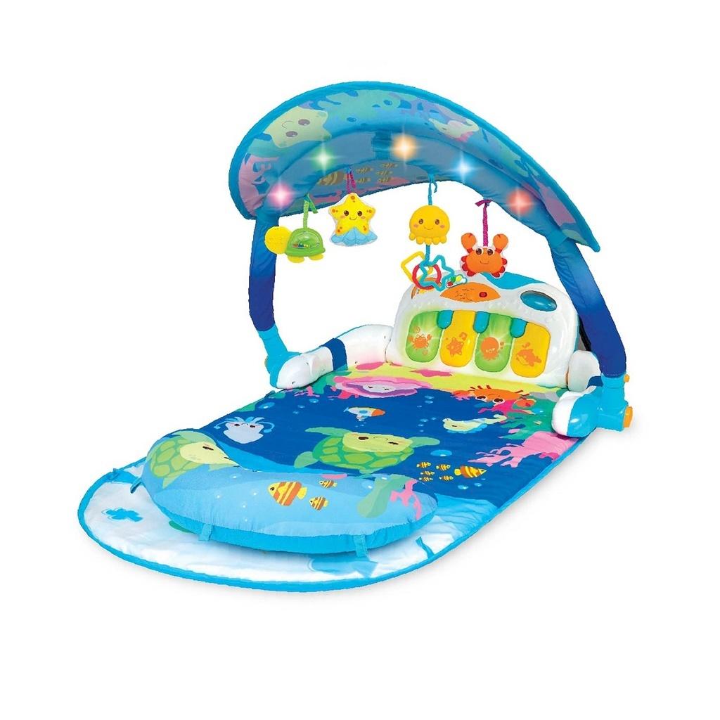 Świecąca Mata Aktywizująca Smily Play Mata sprawdza się przez cały pierwszy rok, a nawet dłużej. Już trzymiesięczne dziecko położone na macie będzie bacznie obserwować kolorowe kształty zabawek podwieszonych na pałąku.