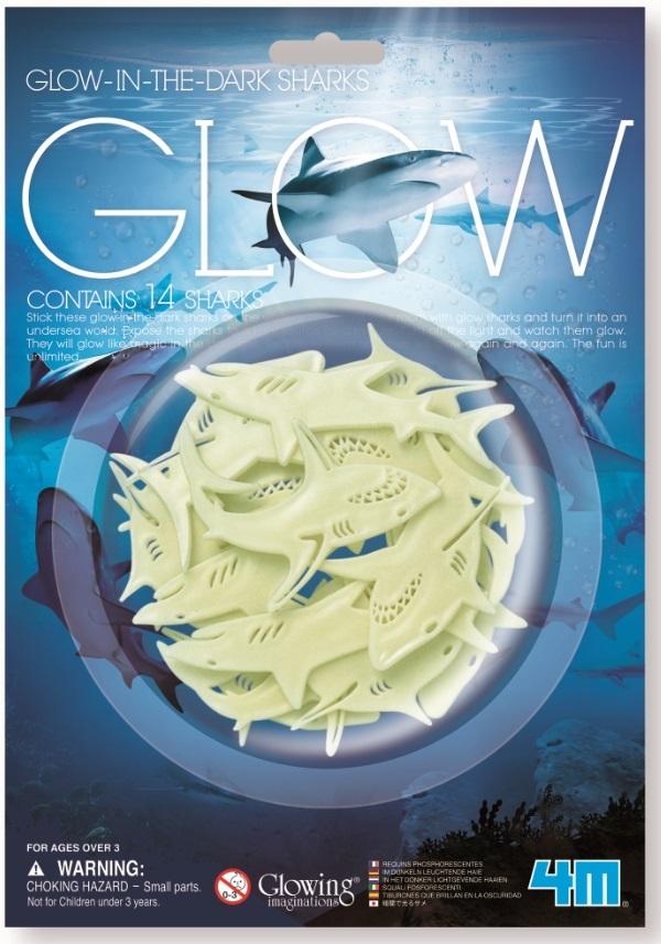 Podwodny świat w Twojej sypialni! Zestaw, w którym znajdziesz fluorescencyjne rekiny, które pozwolą stworzyć świecące nocą scenerie w Twojej sypialni. Przyklej ozdoby do ścian i sufitu. Wystarczy naświetlić wybrane elementy przez minutę, wyłączyć światło i obserwować jak świecą. To niepowtarzalna i inspirująca ozdoba dziecięcego pokoju, która spodoba się zarówno dziewczynkom, jak i chłopcom. W zestawie: 14 świecących w ciemności naklejek-rekinów Wiek: 3+