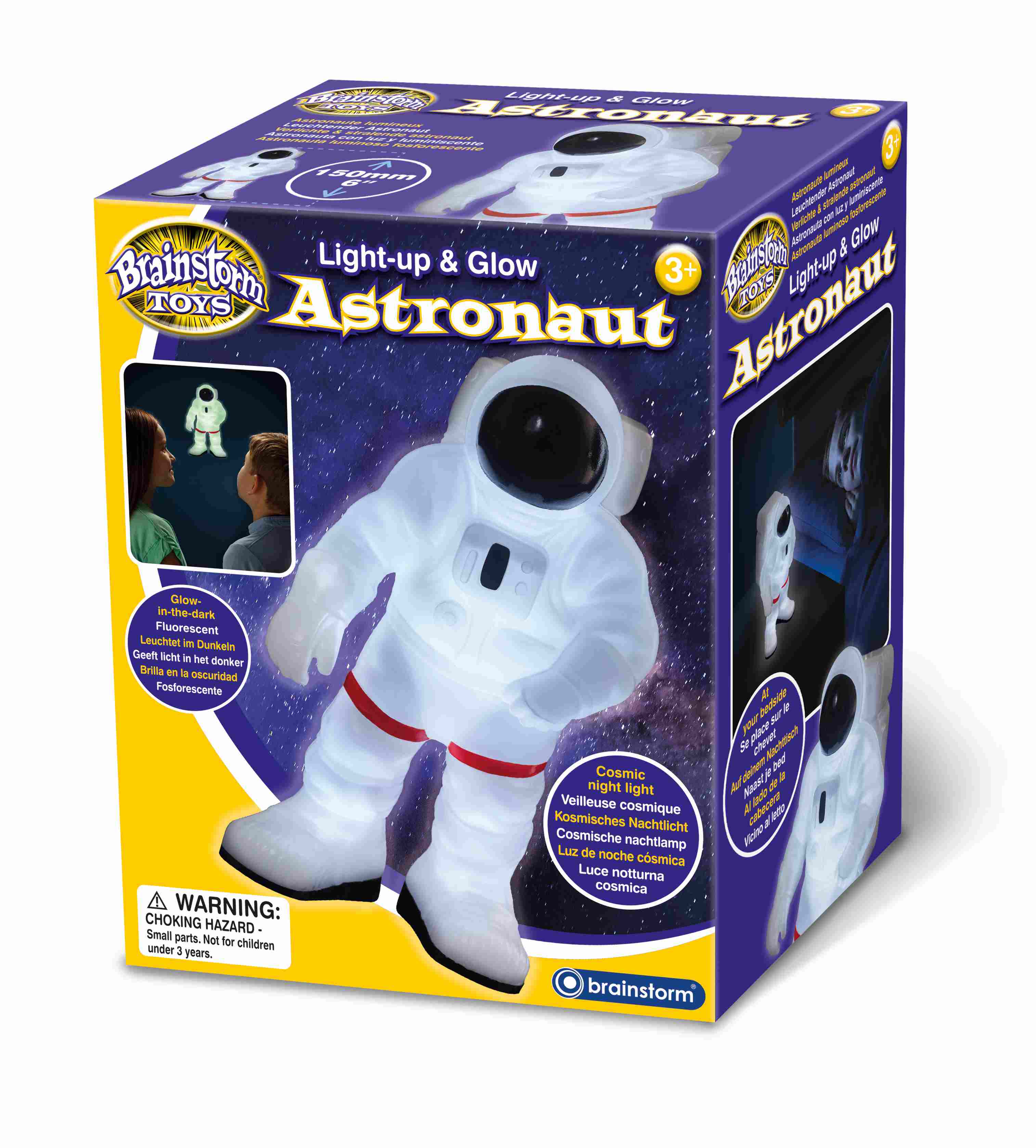 Lampka nocna Astronauta Glow. Twój własny astronauta, który będzie świecił nad Tobą podczas snu. Astronauta ma 15cm wysokości. Wystarczy nacisnąć astronautę, aby włączył i wyłączył światło. Kiedy gaśnie światło, astronauta świeci w ciemności. 30-minutowe automatyczne wyłączanie. Do postawienia lub zawieszenia.Plecak kosmonauty to pojemnik na baterie (3xAAA, nie załączone do zestawu).