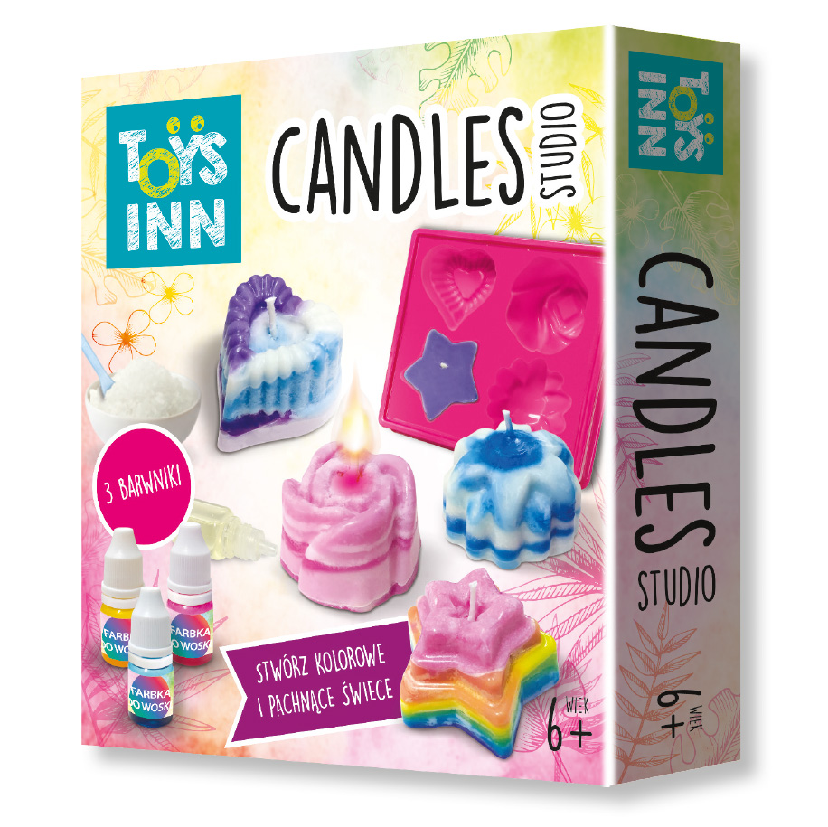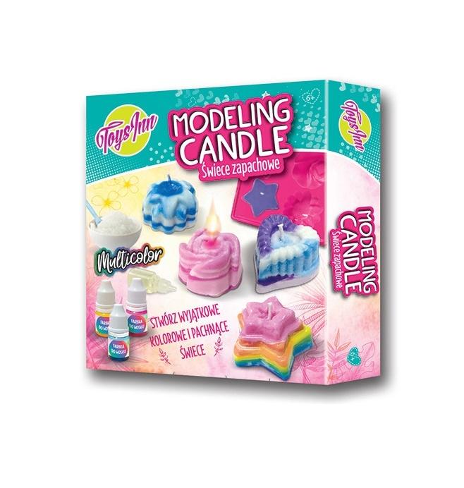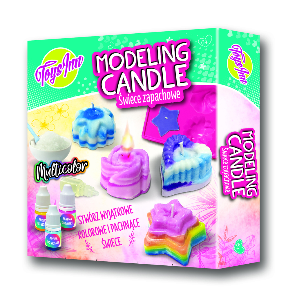 Zestaw Modeling Candle pozwala na stworzenie własnych pachnących, kolorowych świec. Zestaw zawiera: woskową bazę, foremkę, farbki w 3 kolorach, aromat karmelowy, knot, instrukcję. Produkt przeznaczony dla dzieci w wieku 6+