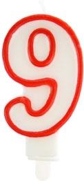 Świeczka urodzinowa w kształcie cyferki ze złotą obwódką na blistrze. Wysokość świeczki 7,5cm.