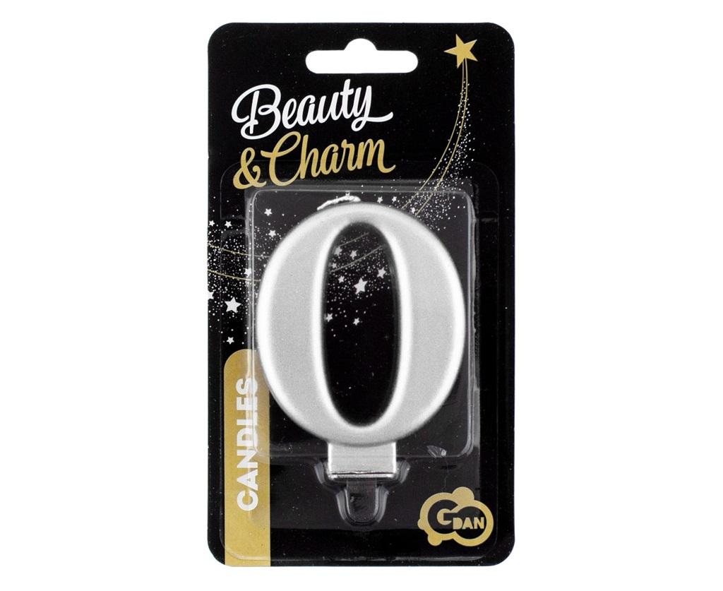ŚWIECZKA CYFERKA 0, METALICZNA SREBRNA, B&C