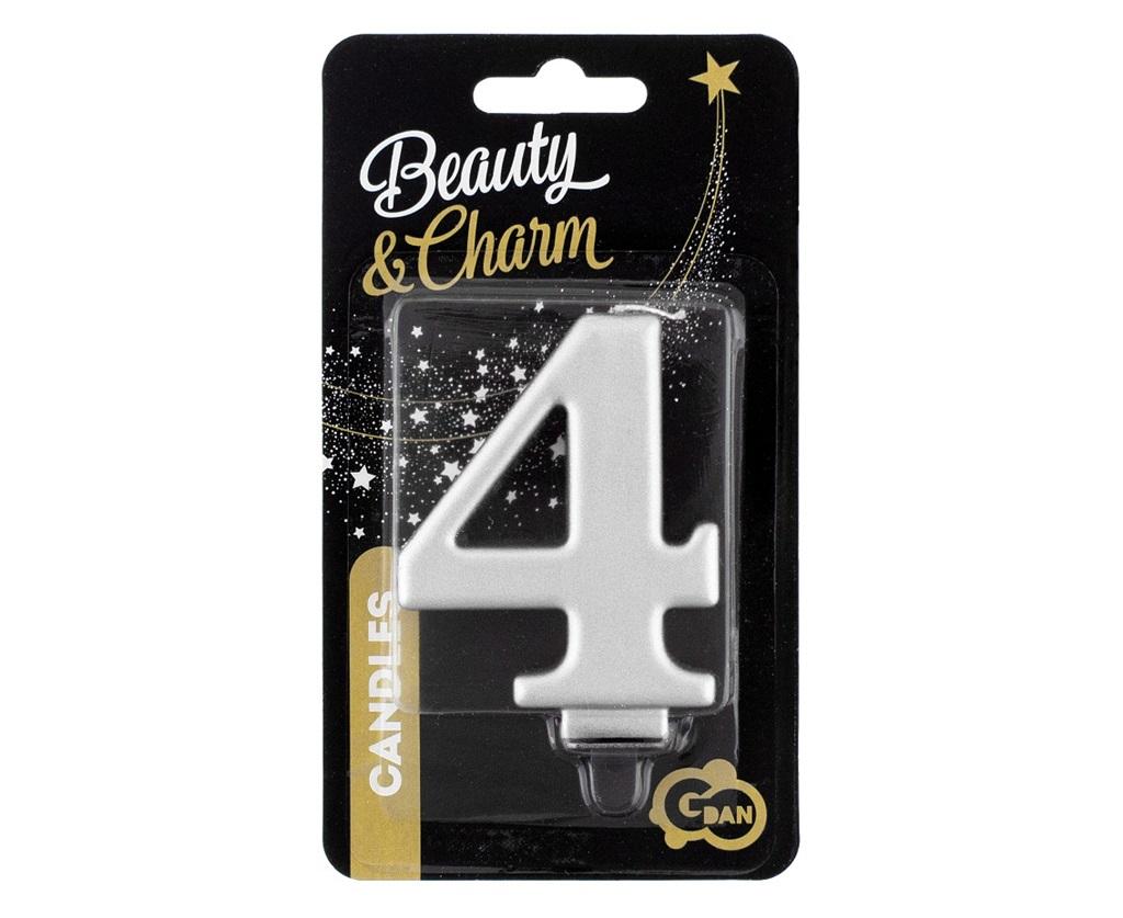 ŚWIECZKA CYFERKA 4, METALICZNA SREBRNA, B&C