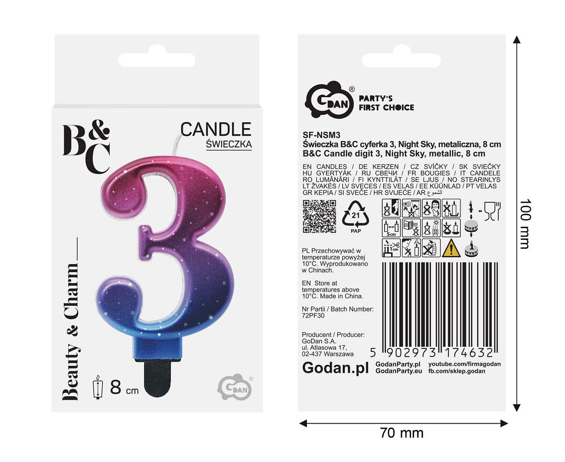 Opakowanie Świeczka B&C cyferka 3 Night Sky metal 8cm