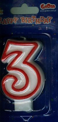 Opakowanie Świeczka cyferka 3 czerwony kontur