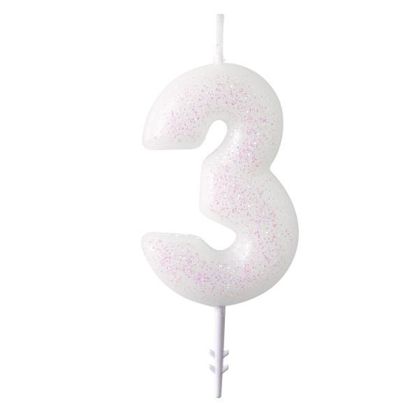 Świeczka cyferka 3 m błyszcząca