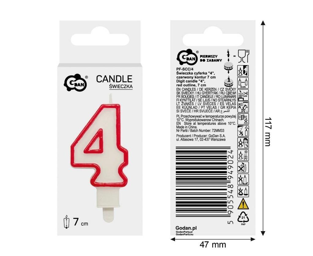Opakowanie Świeczka cyferka 4 czerwony kontur