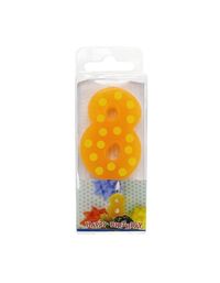 Świeczka cyferka 8 w grochy Świece zapalać tylko na ognioodpornym podłożu. Chronić przed przeciągiem. Nie pozostawiać palącej się świecy bez nadzoru.