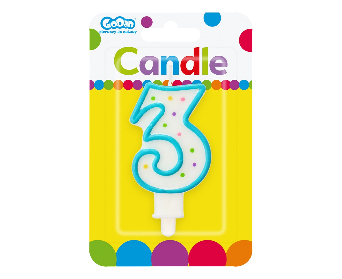 ŚWIECZKA CYFERKA Z KROPECZKAMI 3 7.5 CM PF-SCK3