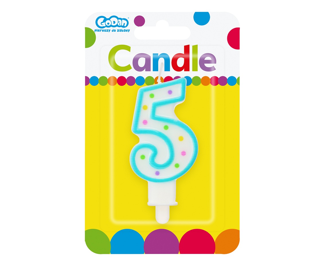 ŚWIECZKA CYFERKA Z KROPECZKAMI 5 7.5 CM PF-SCK5