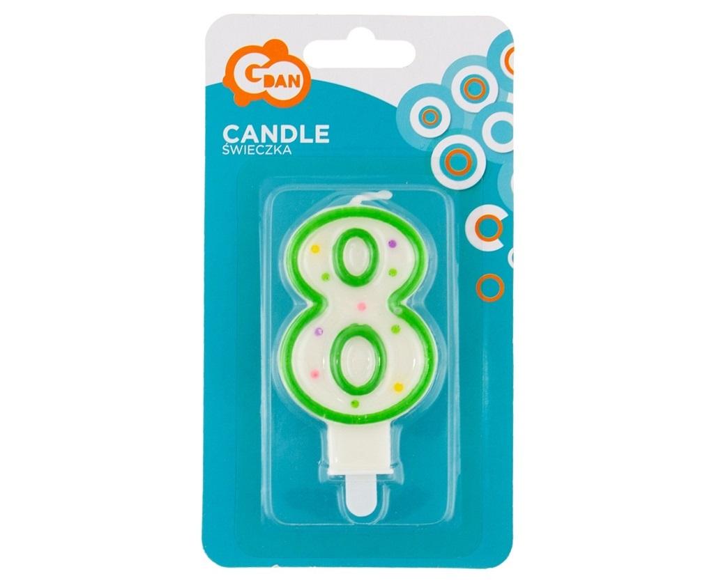 Świeczka cyfra 8 z kropeczkami 7.5cm