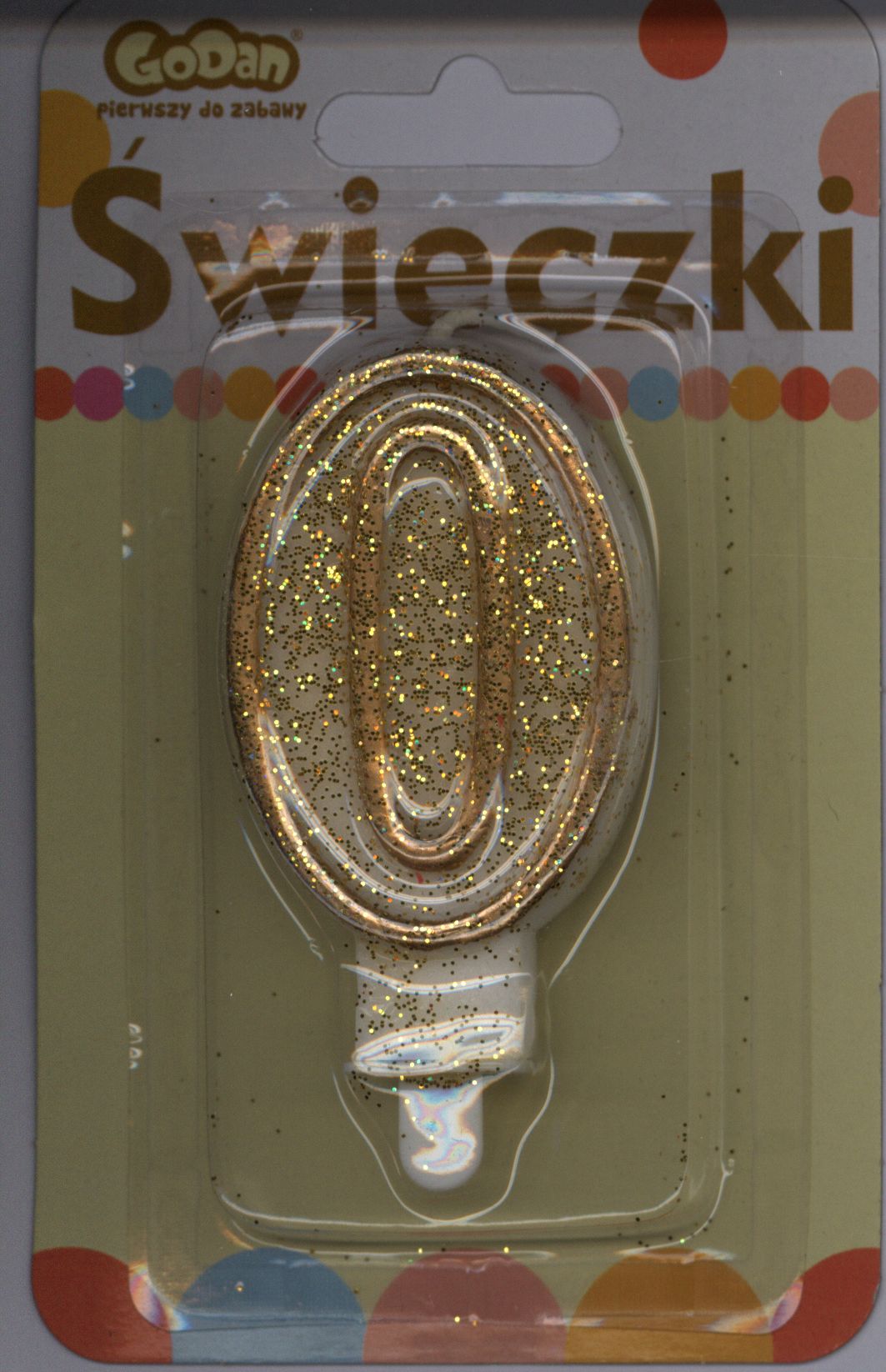 Świeczka CYFRA 0 urodziny, złoty kontur