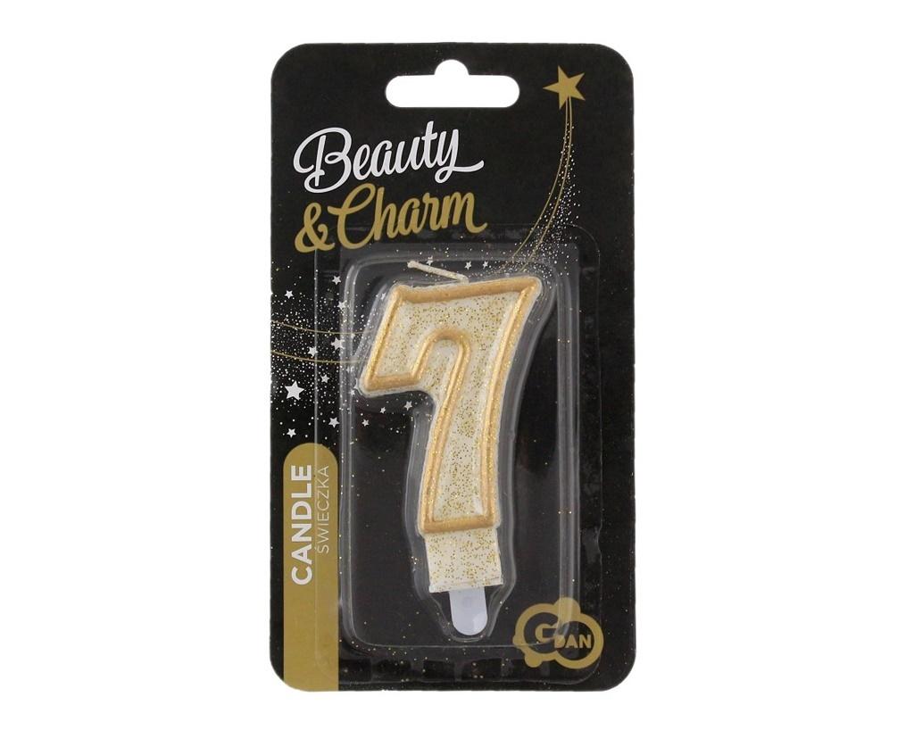 Świeczka CYFRA 7 urodziny, złoty kontur