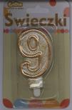 Świeczka CYFRA 9 urodziny, złoty kontur