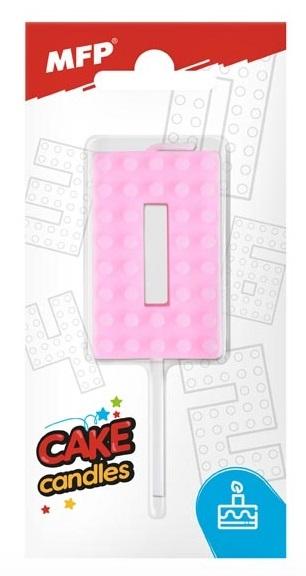 Świeczka urodzinowa klocki cyfra 0 różowa