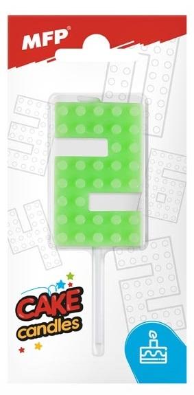 Świeczka urodzinowa klocki cyfra 2 zielona