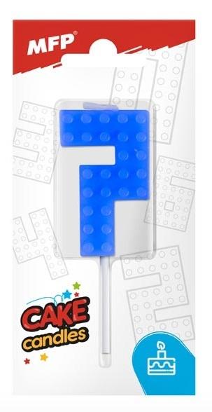 Świeczka urodzinowa klocki cyfra 7 niebieska