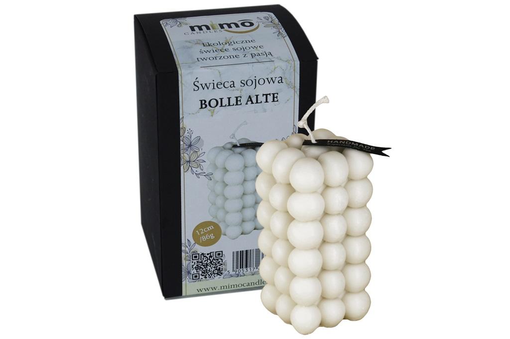Świeca Naturalna Wolnostojąca z Wosku Sojowego BOLLE ALTE Nasze świece to gwarancja zakupu naturalnego, biodegradowalnego produktu. Wosk sojowy to naturalny wosk pozyskiwany z ziaren soi. Odkryj wyjątkową jakość i ekologiczną przyjemność, ze spalania świec sojowych! Nasze świece wykonane są z naturalnego wosku sojowego, pozyskiwanego z odnawialnych źródeł. Palą się dłużej niż tradycyjne świeczki parafinowe, jednak ich czyste spalanie nie tylko tworzy piękne, relaksujące światło, ale dba o jakość powietrza w Twoim domu. Zestawione z delikatnymi zapachami lub w wersji bezwonnych, oferują możliwość stworzenia wyjątkowej atmosfery. Spalając Nasze świece możesz zanurzyć się w przyjemnych aromatach i poczuć korzyści płynące z naturalnych świeczek sojowych. Sprawdź naszą kolekcję, dopasuj ją do swojego wnętrza , świece sojowe to idealne połączenie pięknego designu i przyjaznego środowisku rozwiązaniu. Tobie nie pozostaje nic innego jak cieszyć się ekologicznym luksusem w swoim domu! Wosk sojowy zyskuje swoją popularność dzięki swoim licznym zaletą takim jak: - dłuższy czas palenia, wosk sojowy ma niższą temperaturę topienia co wydłuża czas spalania - jest ekologiczny i biodegradowalny, - nie dymią, co poprawia jakość powietrza w pomieszczeniu, - brak toksyn, świece sojowe palą się czysto i nie wydzielają szkodliwych substancji, -świece posiadają naturalny, przyjemny zapach wosku sojowego, -do produkcji świecy wykorzystywany jest bawełniany knot Dodatkowym atutem naszych świec jest wariacja w formie co oznacza, że nasze świece wolnostojące występujące w różnych kształtach i rozmiarach. Pozwala to na dopasowanie ich pod każdy gust, do różnych wnętrz i na każdą okazję. Świece sojowe w Naszym sklepie to produkty wykonywane ręcznie. Szczegóły produktu: Waga: 86g Wysokość: 12cm Świece sojowe to idealny prezent na każdą okazję! Ich naturalna elegancja oraz nasza opcja pakowania prezentowego podoła nawet najbardziej wymagającym. Niezależnie od tego czy obchodzimy urodziny, imieniny, święta czy po prostu chcemy podarować wyjątkowy prezent nasze świece zachwycą każdego, ponieważ forma spalania i jego długość sprawiają, że mogą cieszyć się nimi przez długi czas, tworząc przy tym wyjątkowa atmosferę i relaksujący nastrój. Nasze produkty są wytwarzane ręcznie, dlatego mogą posiadać lekkie niedoskonałości oraz biały nalot co jest naturalnym zjawiskiem wytwarzanym przez wosk sojowy.