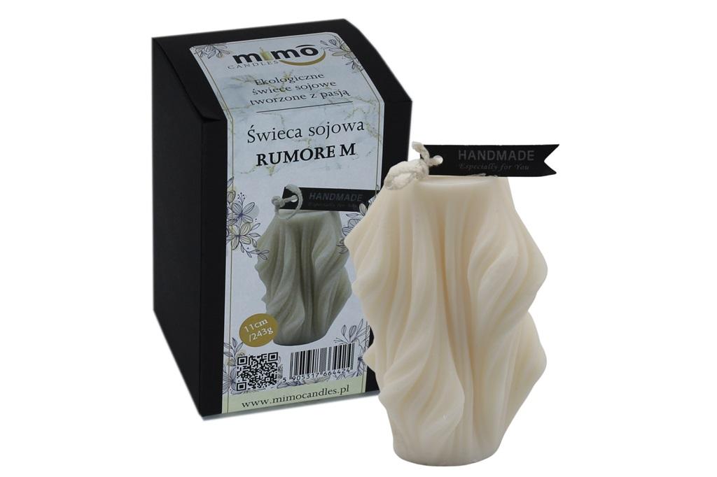 Świeca Naturalna Wolnostojąca z Wosku Sojowego RUMORE M Nasze świece to gwarancja zakupu naturalnego, biodegradowalnego produktu. Wosk sojowy to naturalny wosk pozyskiwany z ziaren soi. Odkryj wyjątkową jakość i ekologiczną przyjemność, ze spalania świec sojowych! Nasze świece wykonane są z naturalnego wosku sojowego, pozyskiwanego z odnawialnych źródeł. Palą się dłużej niż tradycyjne świeczki parafinowe, jednak ich czyste spalanie nie tylko tworzy piękne, relaksujące światło, ale dba o jakość powietrza w Twoim domu. Zestawione z delikatnymi zapachami lub w wersji bezwonnych, oferują możliwość stworzenia wyjątkowej atmosfery. Spalając Nasze świece możesz zanurzyć się w przyjemnych aromatach i poczuć korzyści płynące z naturalnych świeczek sojowych. Sprawdź naszą kolekcję, dopasuj ją do swojego wnętrza , świece sojowe to idealne połączenie pięknego designu i przyjaznego środowisku rozwiązaniu. Tobie nie pozostaje nic innego jak cieszyć się ekologicznym luksusem w swoim domu! Wosk sojowy zyskuje swoją popularność dzięki swoim licznym zaletą takim jak: - dłuższy czas palenia, wosk sojowy ma niższą temperaturę topienia co wydłuża czas spalania - jest ekologiczny i biodegradowalny, - nie dymią, co poprawia jakość powietrza w pomieszczeniu, - brak toksyn, świece sojowe palą się czysto i nie wydzielają szkodliwych substancji, -świece posiadają naturalny, przyjemny zapach wosku sojowego, -do produkcji świecy wykorzystywany jest bawełniany knot Dodatkowym atutem naszych świec jest wariacja w formie co oznacza, że nasze świece wolnostojące występujące w różnych kształtach i rozmiarach. Pozwala to na dopasowanie ich pod każdy gust, do różnych wnętrz i na każdą okazję. Świece sojowe w Naszym sklepie to produkty wykonywane ręcznie. Szczegóły produktu: Waga: 243g Wysokość: 11cm Świece sojowe to idealny prezent na każdą okazję! Ich naturalna elegancja oraz nasza opcja pakowania prezentowego podoła nawet najbardziej wymagającym. Niezależnie od tego czy obchodzimy urodziny, imieniny, święta czy po prostu chcemy podarować wyjątkowy prezent nasze świece zachwycą każdego, ponieważ forma spalania i jego długość sprawiają, że mogą cieszyć się nimi przez długi czas, tworząc przy tym wyjątkowa atmosferę i relaksujący nastrój. Nasze produkty są wytwarzane ręcznie, dlatego mogą posiadać lekkie niedoskonałości oraz biały nalot co jest naturalnym zjawiskiem wytwarzanym przez wosk sojowy.