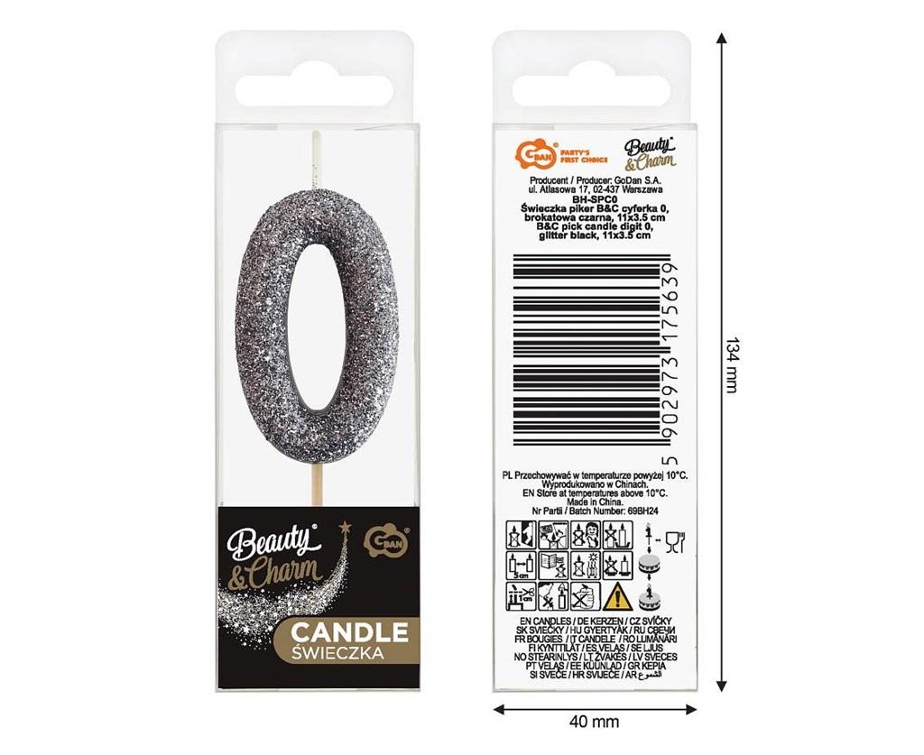 Opakowanie Świeczka piker 0 czarna brokatowa 11x3.5 cm