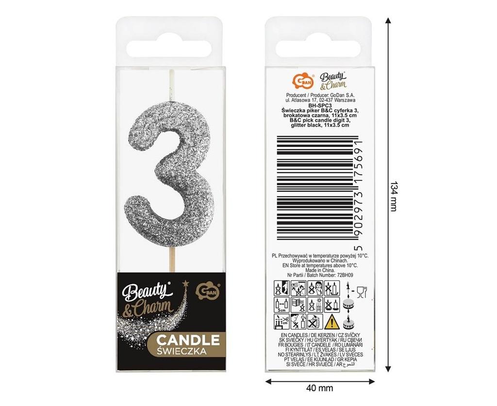 Opakowanie Świeczka piker 3 czarna brokatowa 11x3.5 cm