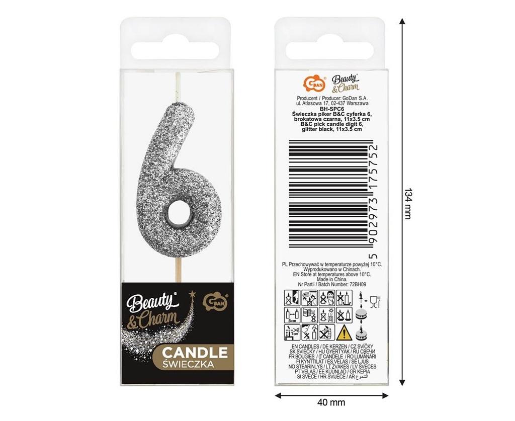 Opakowanie Świeczka piker 6 czarna brokatowa 11x3.5 cm