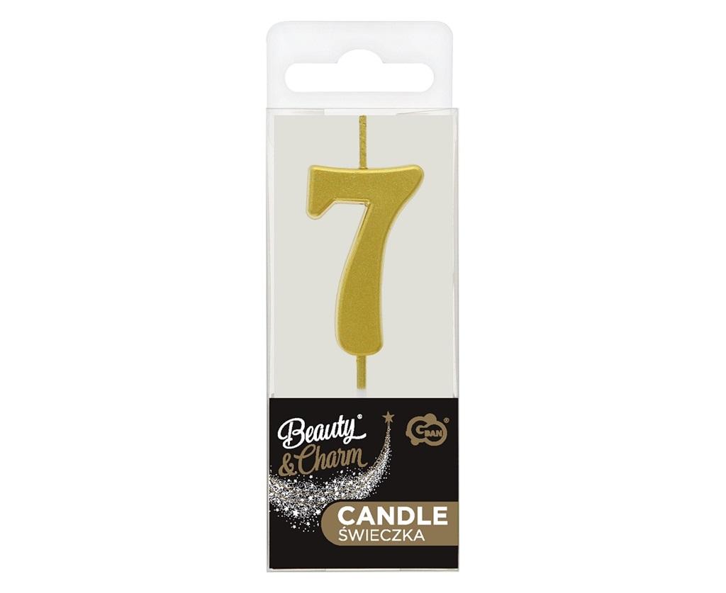 Świeczka piker B&C cyfra 7 metaliczna złota 9,5cm
