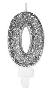 Świeczka cyferka brokatowa na podstawce. Wysokość świeczki 7,5 cm.