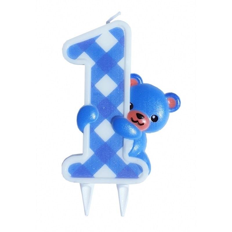 Świeczka urodzinowa SF-111, Niebieski Miś 10cm Cyfra 1