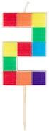 Świeczka urodzinowa w kształcie cyfry 0 z motywem kolorowych klocków. Idealna jako dopełnienie dekoracji tortu. Posiada element umożliwiający stabilne wbicie świeczki w ciasto. Wysokość świeczki to 7 cm.