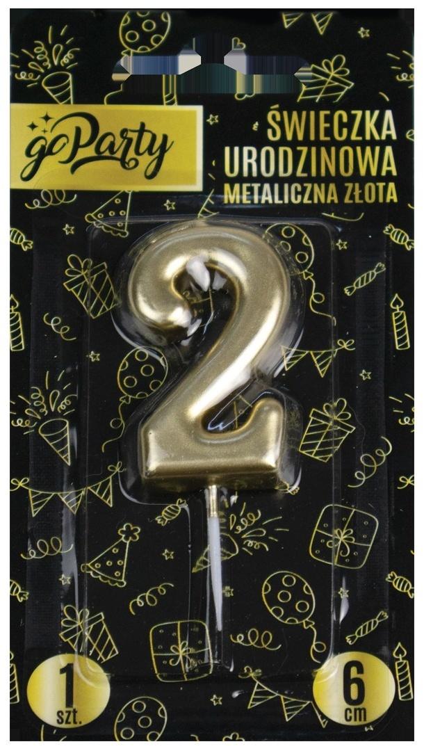 Świeczka urodzinowa 2 Metaliczna złota