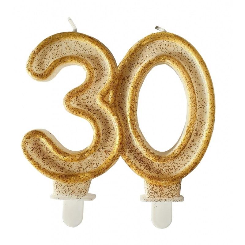 Świeczka urodzinowa "30" w złotym brokacie. Wys. 7 cm.