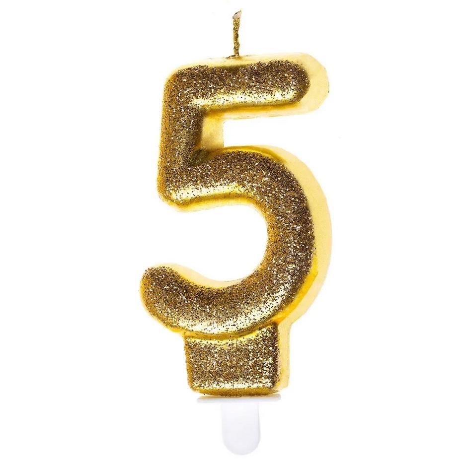 Opakowanie Świeczka urodzinowa 5 złoty brokat