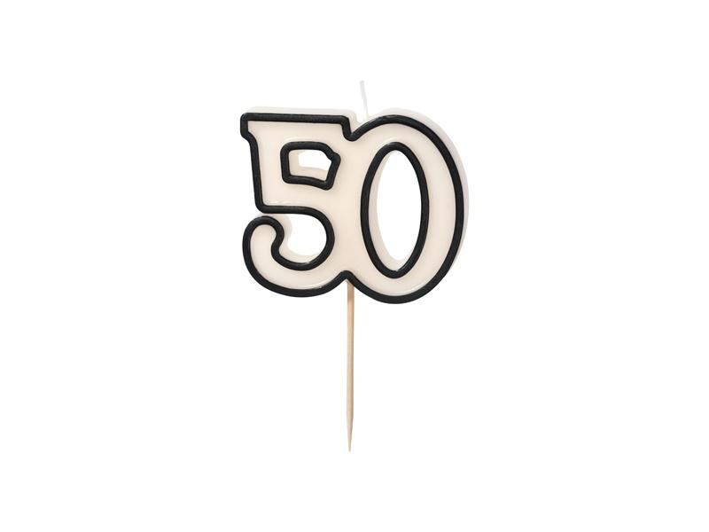 Świeczka urodzinowa liczba 50, kolor biało-czarny, wysokość ok. 5,5 cm