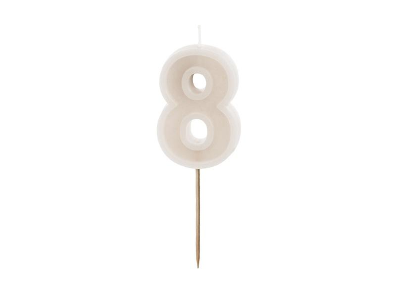 Świeczka urodzinowa Cyferka 8 w kolorze beżowym, rozmiar ok. 6 cm