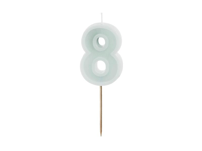 Świeczka urodzinowa Cyferka 8 w kolorze jasnomiętowym, rozmiar ok. 6 cm