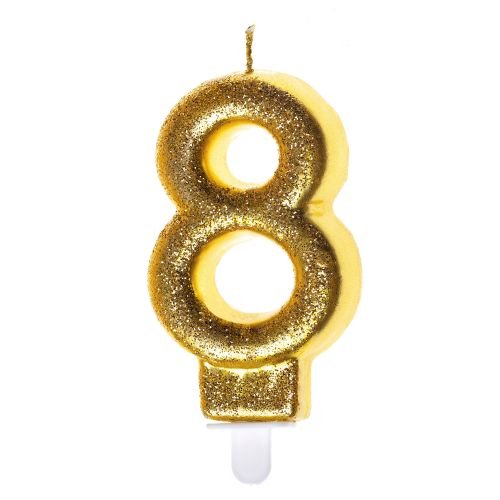 Opakowanie Świeczka urodzinowa 8 złoty brokat
