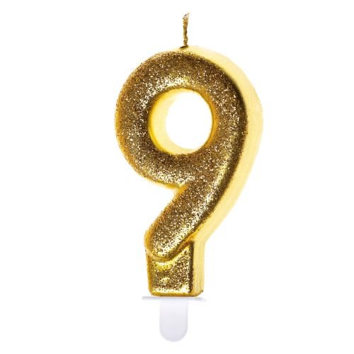Świeczka urodzinowa 9 złoty brokat