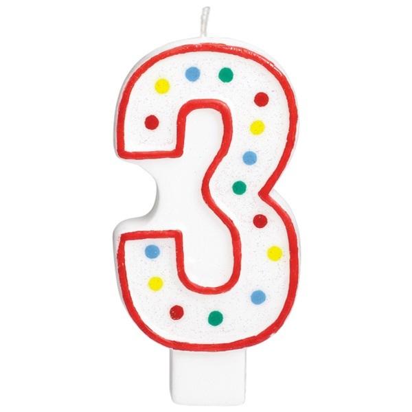Opakowanie Świeczka urodzinowa cyferka 3 biała w kropki