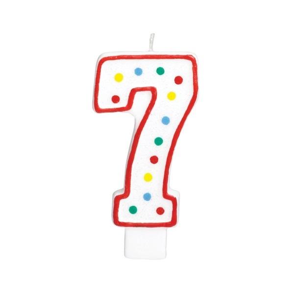 Opakowanie Świeczka urodzinowa cyferka 7 biała w kropki