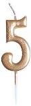 Świeczka urodzinowa metaliczna 5 złota
