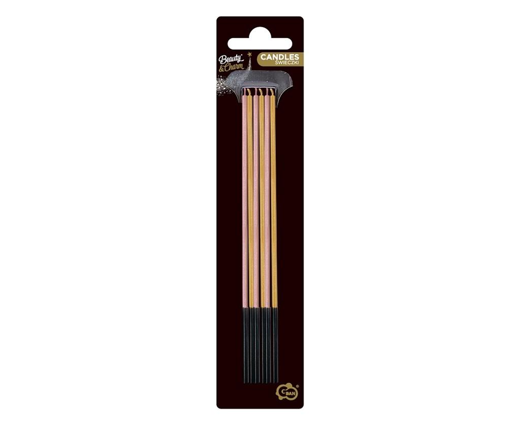 Świeczki B&C metaliczne, róż/złoty, 3x3x170mm, 6 szt. Wysokość: 17 cm Szerokość: 0,3 cm Głębokość: 0,3 cm Wzór: metaliczne Kolor: róż / złoty Ilość: 6 szt. Kolekcja: Beauty & Charm