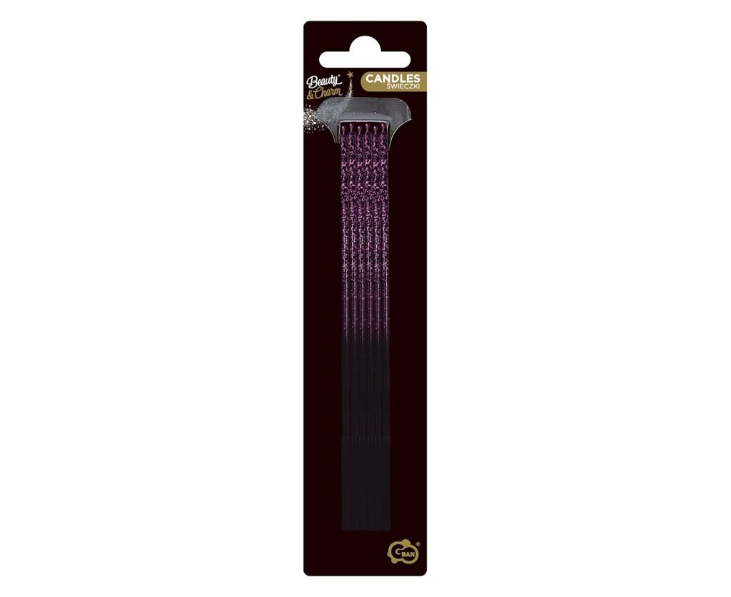 Świeczki B&C Ombre, fioletowy brokat, 3x3x170mm, 6 szt.