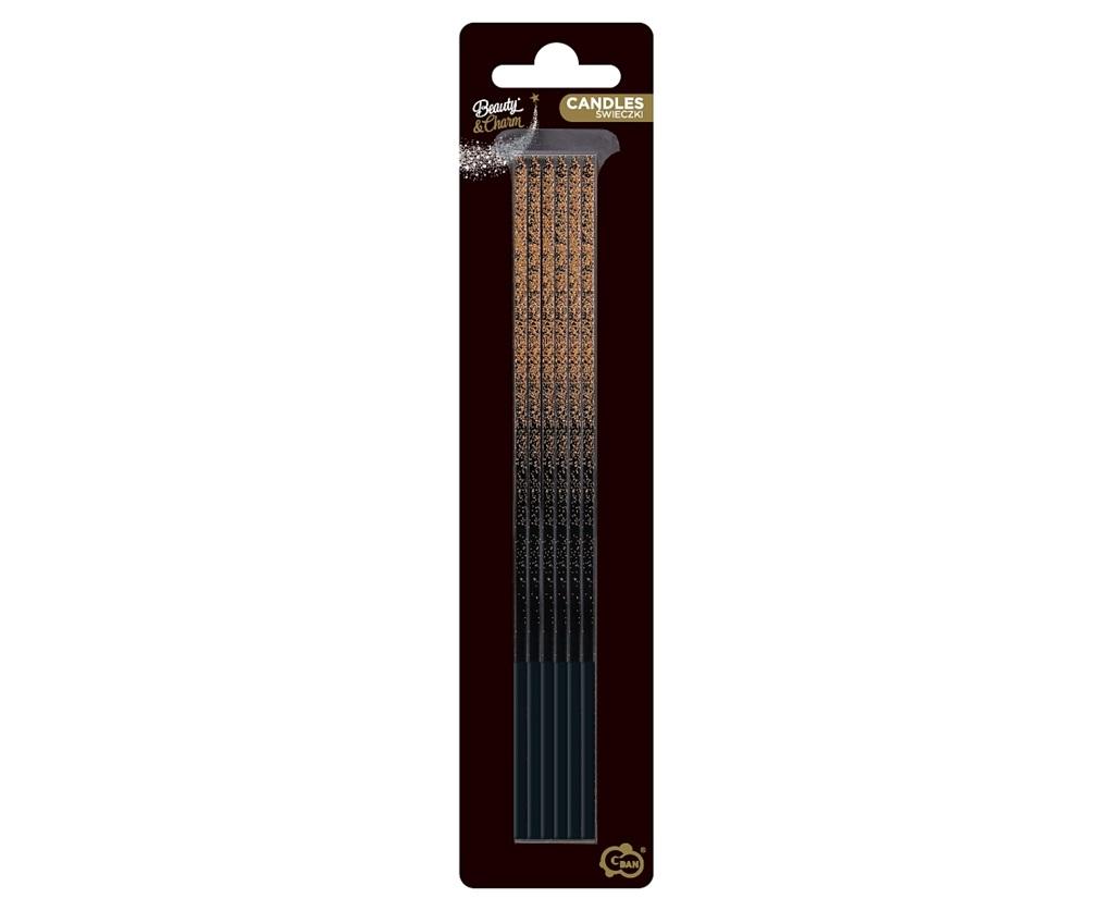 Świeczki B&C Ombre, miedziany brokat, 3x3x170mm, 6 szt.
