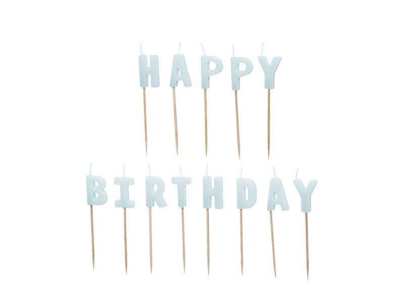 Świeczki urodzinowe Happy Birthday w kolorze jasnobłękitnym, wysokość ok. 2.5 cm.(1 op. / 13 szt.)