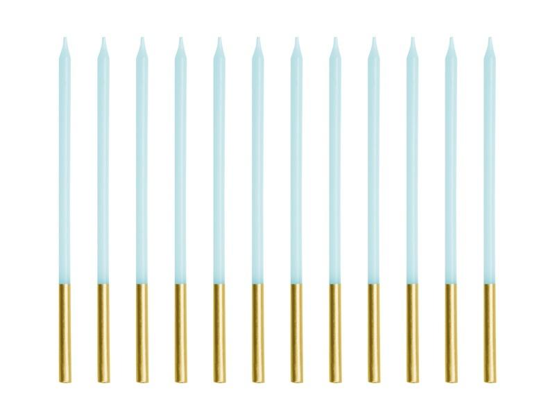 Świeczki urodzinowe gładkie w kolorze jasnobłękitnym, wysokość ok. 14 cm. Zestaw zawiera 12 świeczek.(1 op. / 12 szt.)