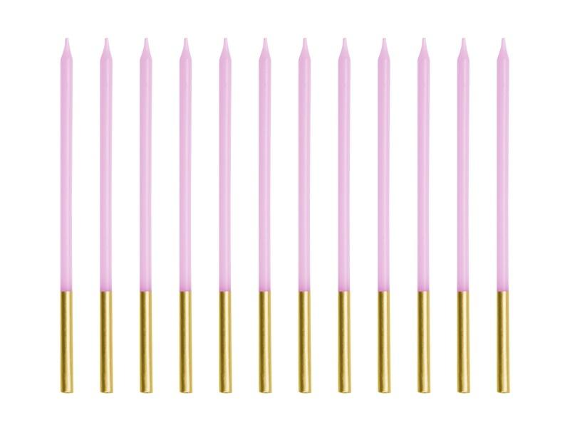 Świeczki urodzinowe gładkie w kolorze fioletowym, wysokość ok. 14 cm. Zestaw zawiera 12 świeczek.(1 op. / 12 szt.)