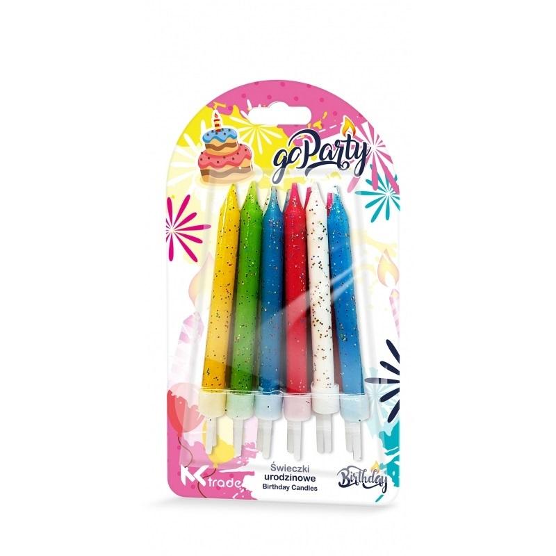 Świeczki urodzinowe kolorowe z brokatem 8cm 12szt