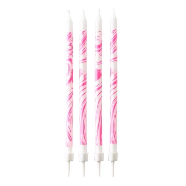 Świeczka urodzinowa marmurkowa różowa 12szt