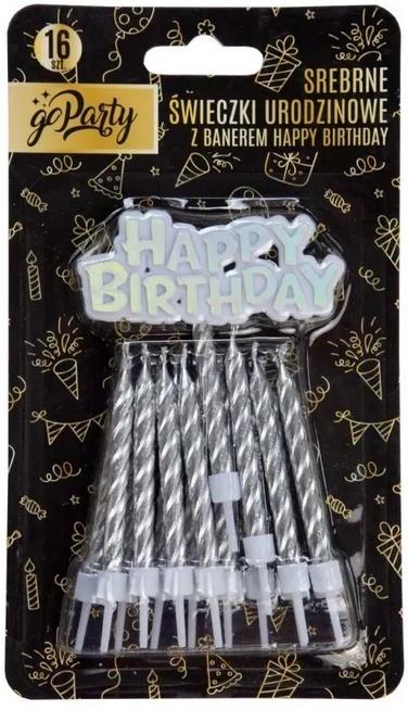 Opakowanie Świeczki urodzinowe srebrne HB 16szt